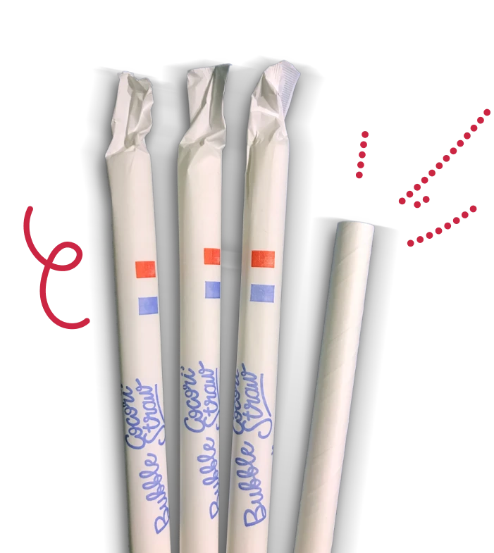 Der Papierstrohhalm Bubble Cocori'Straw ist breiter als ein herkömmlicher Strohhalm, um den Genuss eines Bubble Tea zu ermöglichen, und lässt die Tapiokaperlen, Fruchtperlen sowie das Kokosnussgelee Nata durch. Er garantiert ein gelungenes Geschmackserlebnis!